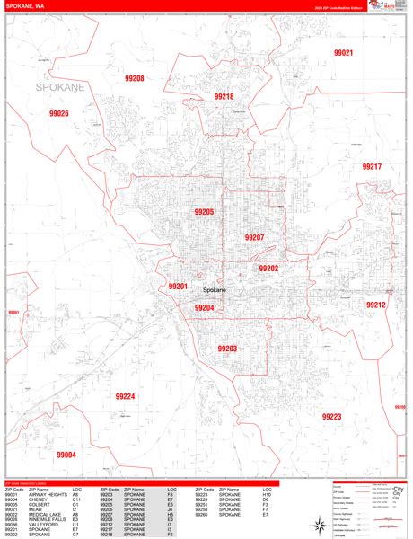 Spokane County, WA Zip Code Wall Map Basic Style by MarketMAPS MapSales