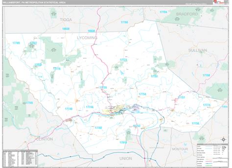 Williamsport, PA Metro Area Wall Map Premium Style by MarketMAPS MapSales