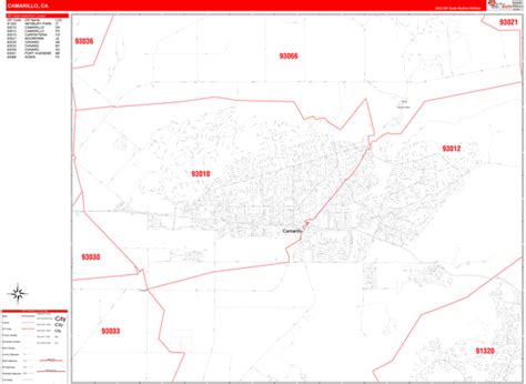 Camarillo California Zip Code Wall Map (Red Line Style) by MarketMAPS