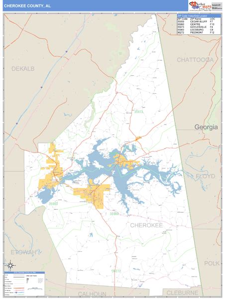 Cherokee County, GA Zip Code Wall Map Red Line Style by MarketMAPS