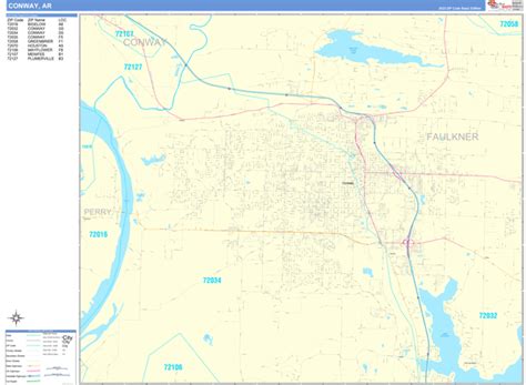 Conway County, AR Zip Code Wall Map Red Line Style by MarketMAPS