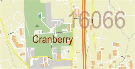 Cranberry 16066 plus surrounding zip codes Pennsylvania US Map Vector