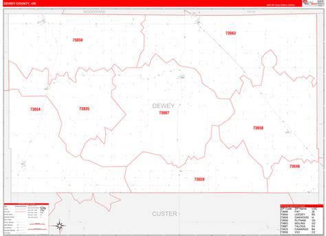Dewey County, SD Zip Code Wall Map Red Line Style by MarketMAPS