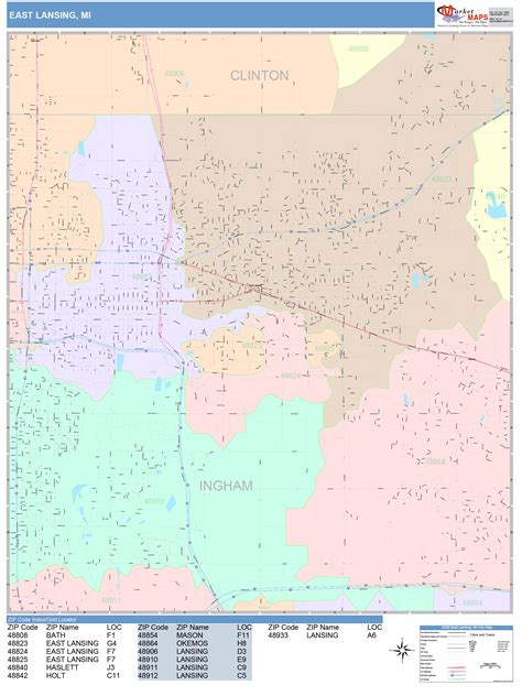 East Lansing Michigan Zip Code Wall Map Basic Style By Marketmaps