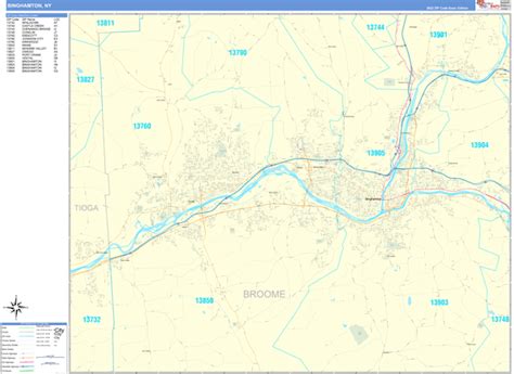 Binghamton New York Zip Code Wall Map (Red Line Style) by MarketMAPS