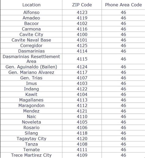 PhilZipCode ZIP Codes & Phone Area Code of Cavite Province