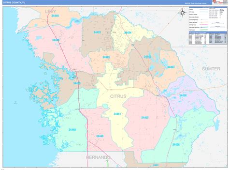 Citrus County, FL Zip Code Wall Map Basic Style by MarketMAPS MapSales
