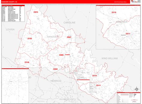 Hanover County, VA Zip Code Wall Map Basic Style by MarketMAPS MapSales