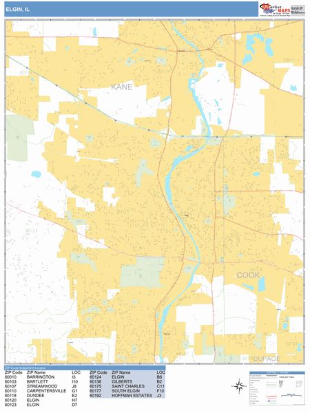 Elgin Illinois Zip Code Wall Map (Red Line Style) by MarketMAPS MapSales