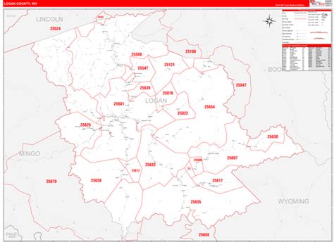 Logan County, WV Zip Code Wall Map Basic Style by MarketMAPS