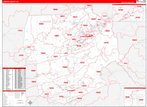 Luzerne County, PA Zip Code Wall Map Red Line Style by MarketMAPS
