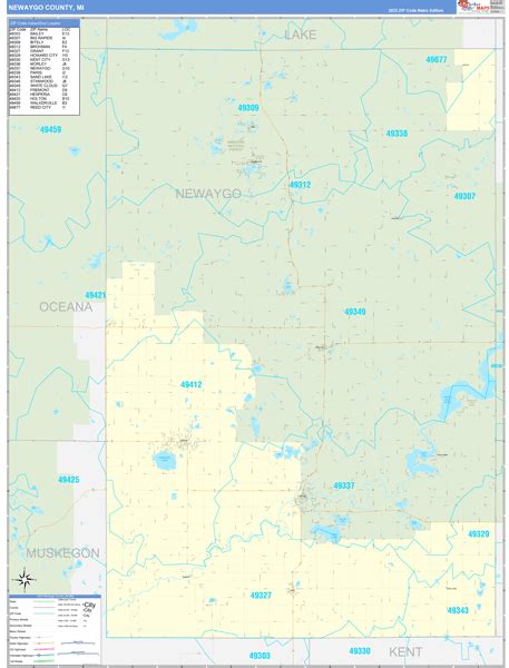 Newaygo County, MI Zip Code Wall Map Red Line Style by MarketMAPS