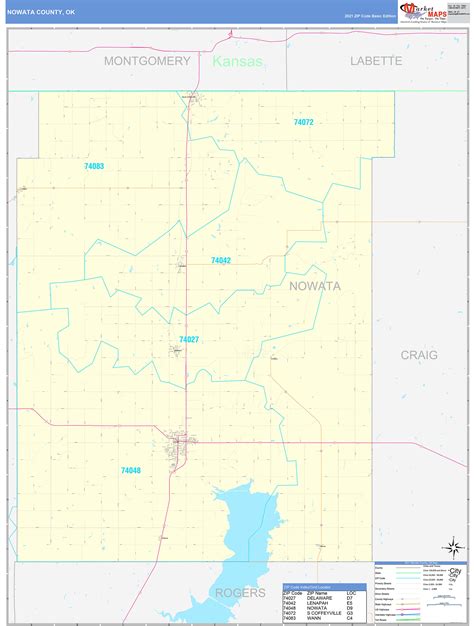 Nowata County, OK Zip Code Wall Map Basic Style by MarketMAPS MapSales