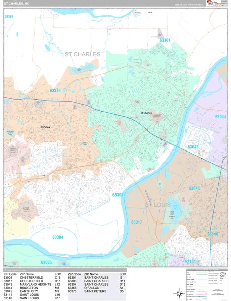St Charles Missouri Zip Code Wall Map Premium Style By Marketmaps