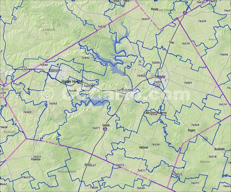 Temple, Texas Zip Codes Bell County, TX Zip Code Boundary Map