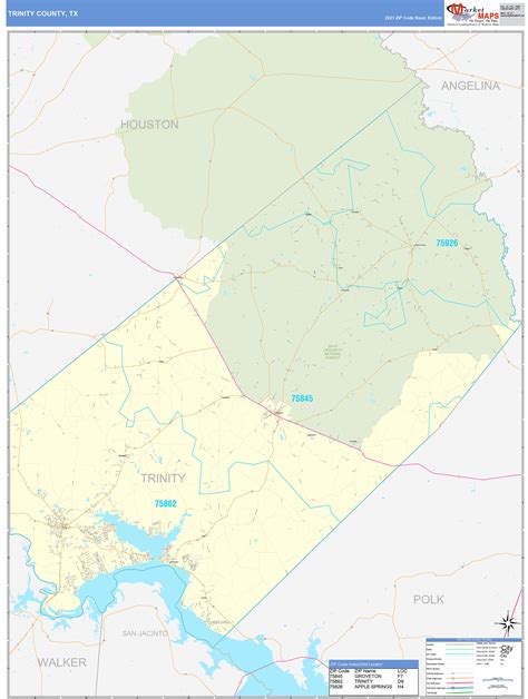 Trinity County, TX Zip Code Wall Map Basic Style by MarketMAPS MapSales
