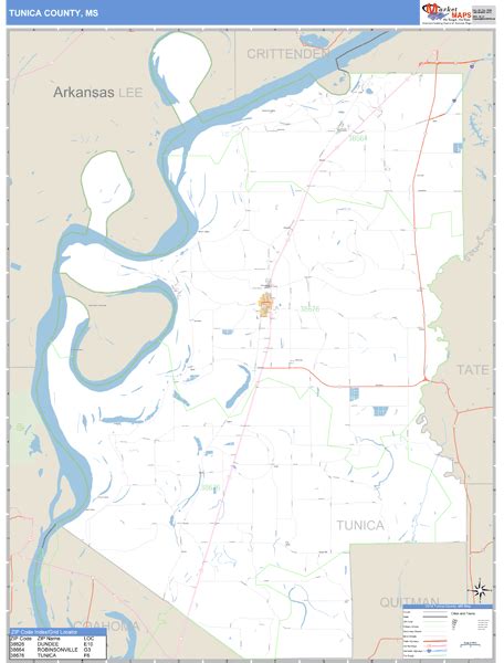 Tunica County, Mississippi MS ZIP Code Map Not Laminated