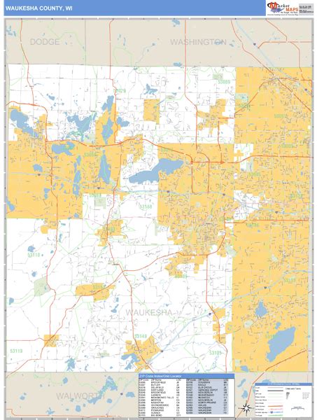Waukesha Wisconsin Zip Code Wall Map (Red Line Style) by MarketMAPS
