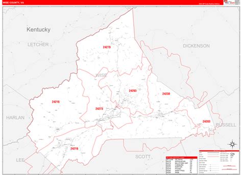 Wise County, VA Zip Code Wall Map Basic Style by MarketMAPS MapSales