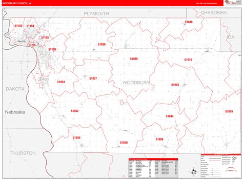 Woodbury County, IA Zip Code Wall Map Basic Style by MarketMAPS MapSales