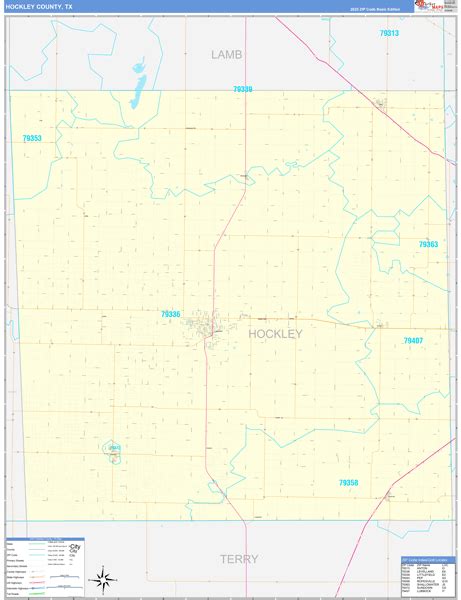 Hockley County, TX Zip Code Wall Map Red Line Style by MarketMAPS