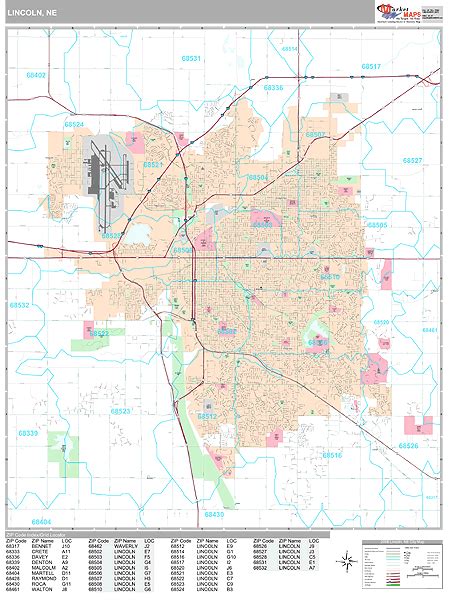Lincoln Nebraska Zip Code Wall Map (Red Line Style) by MarketMAPS