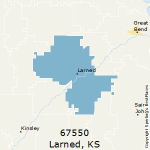 Zip Code Larned Ks. Zip code 67550 is located in the city of larned, kansas and covers 304.205. Portions of 67550 are also in conkling township and valley center.
