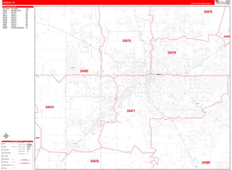 Ocala Florida Zip Code Wall Map (Red Line Style) by MarketMAPS