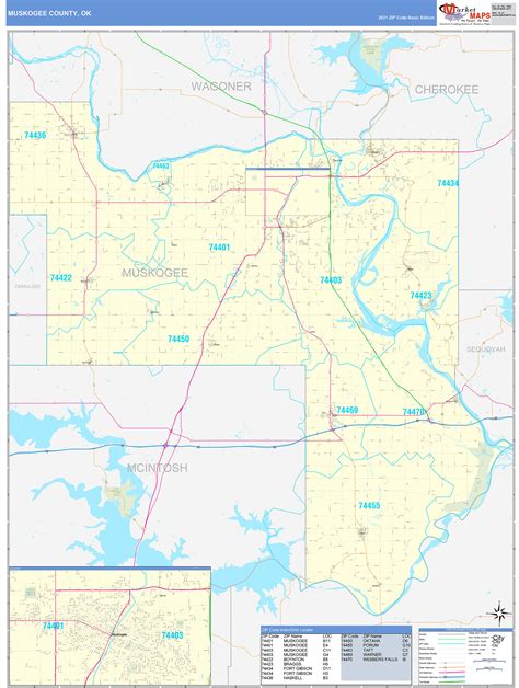 Muskogee County, OK Zip Code Wall Map Red Line Style by MarketMAPS