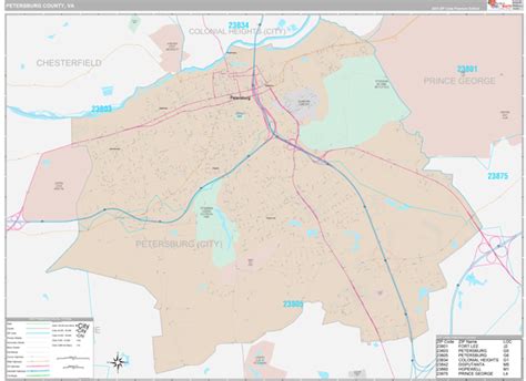 Petersburg City Zip Code Map, Virginia Petersburg City County Zip Codes