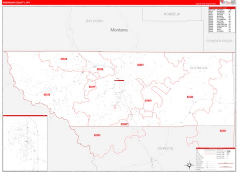 Sheridan County, WY Zip Code Wall Map Basic Style by MarketMAPS MapSales