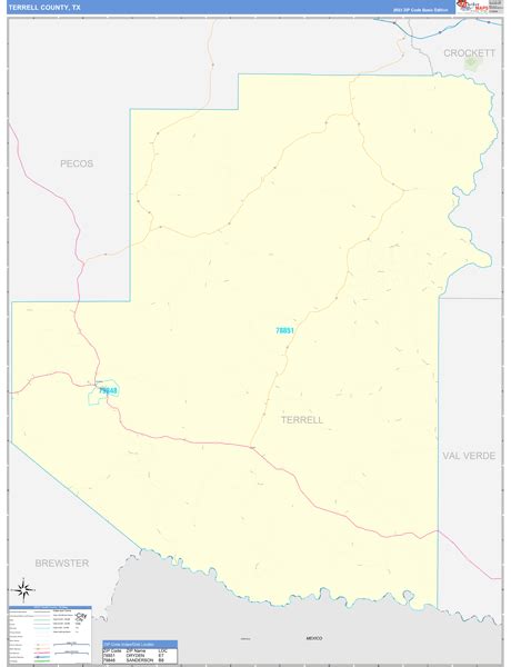 Terrell County, TX Zip Code Wall Map Basic Style by MarketMAPS MapSales