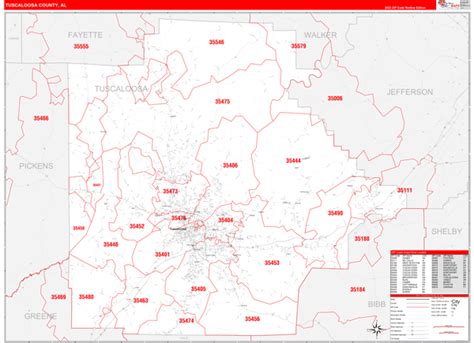 Tuscaloosa Alabama Zip Code Wall Map (Red Line Style) by MarketMAPS