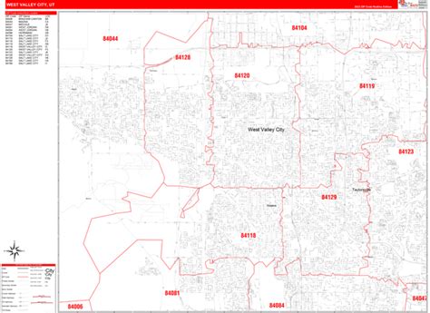 West Valley City Utah Zip Code Wall Map (Red Line Style) by MarketMAPS
